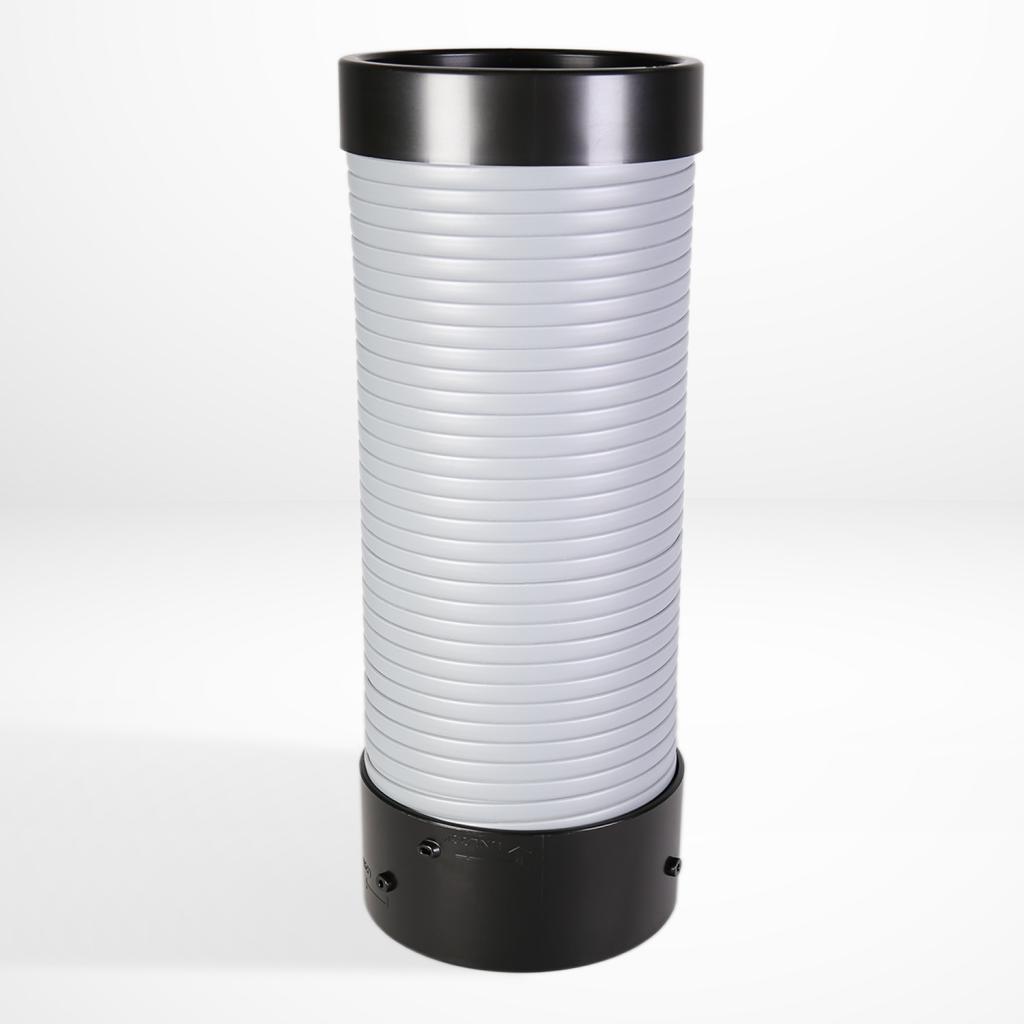 12-in diameter plastic duct that extends 6.5 to 10 feet in length |